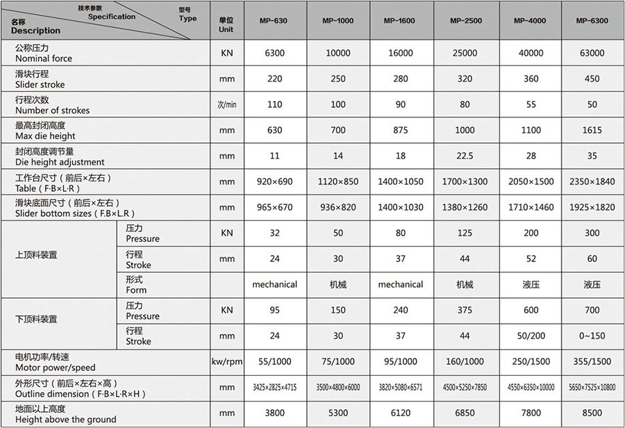 MP系列熱模鍛壓力機是引進德國先進技術(shù)生產(chǎn)的改進型系列產(chǎn)品,擴大了壓力機使用范圍。