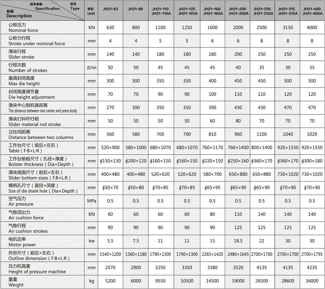 JH21-160/200/250開式固定臺(tái)壓力機(jī)
